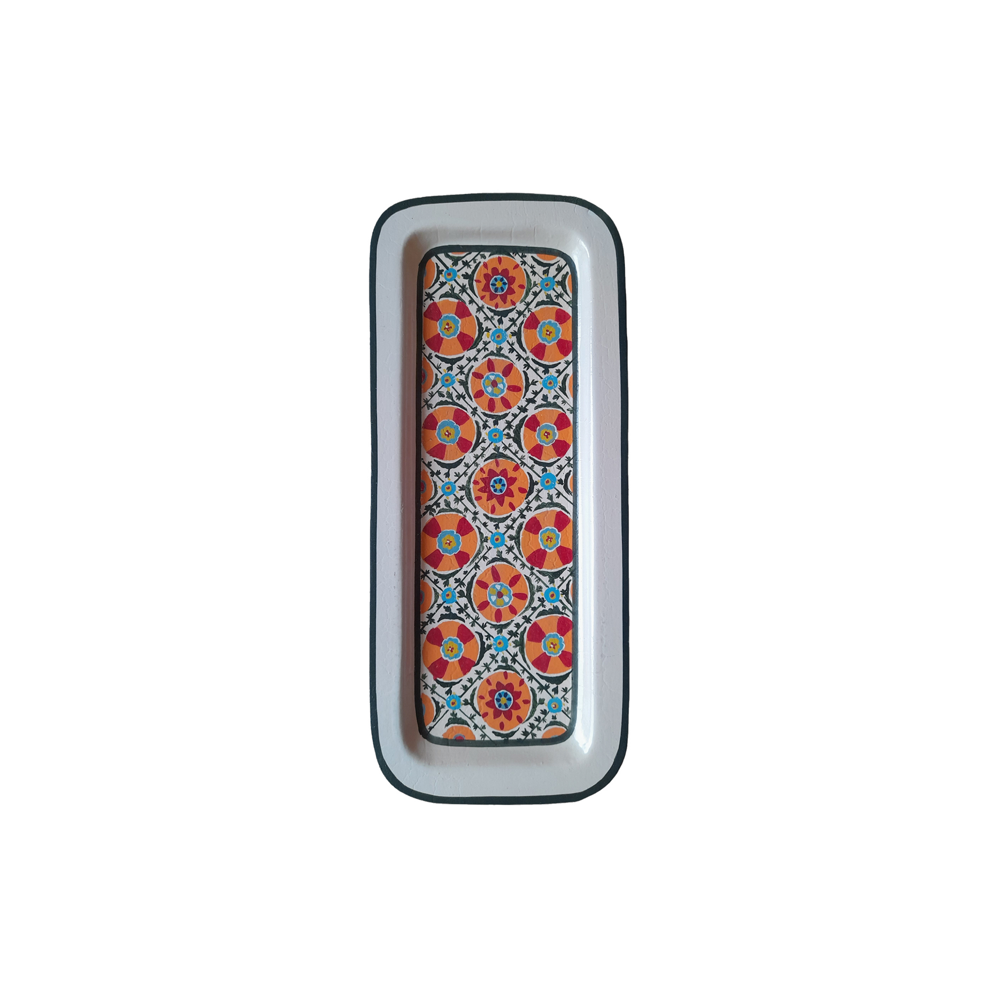 Decorative Hand Painted Iron Tray (White and Black) Small Ikat Tray
