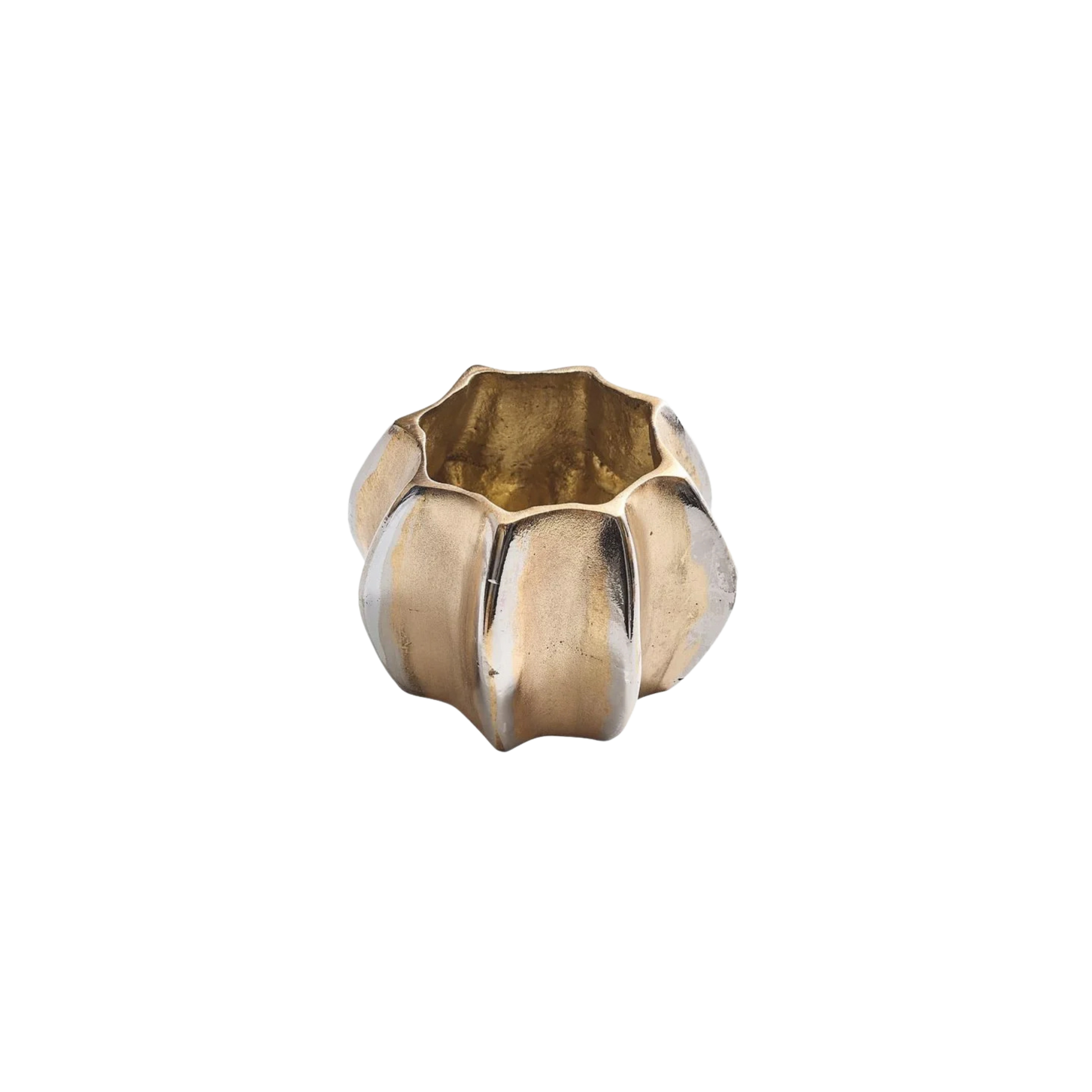 The Desert Napkin Ring is cast in two-tone gold and silver metal works with any style setting. Its protruding edges are hand-polished to reveal the silver-color plating beneath, creating a subtle air of elegance. Pair with an elegant white linen napkin or an ornate beaded placemat, the metal Desert Napkin Ring is a showstopper.